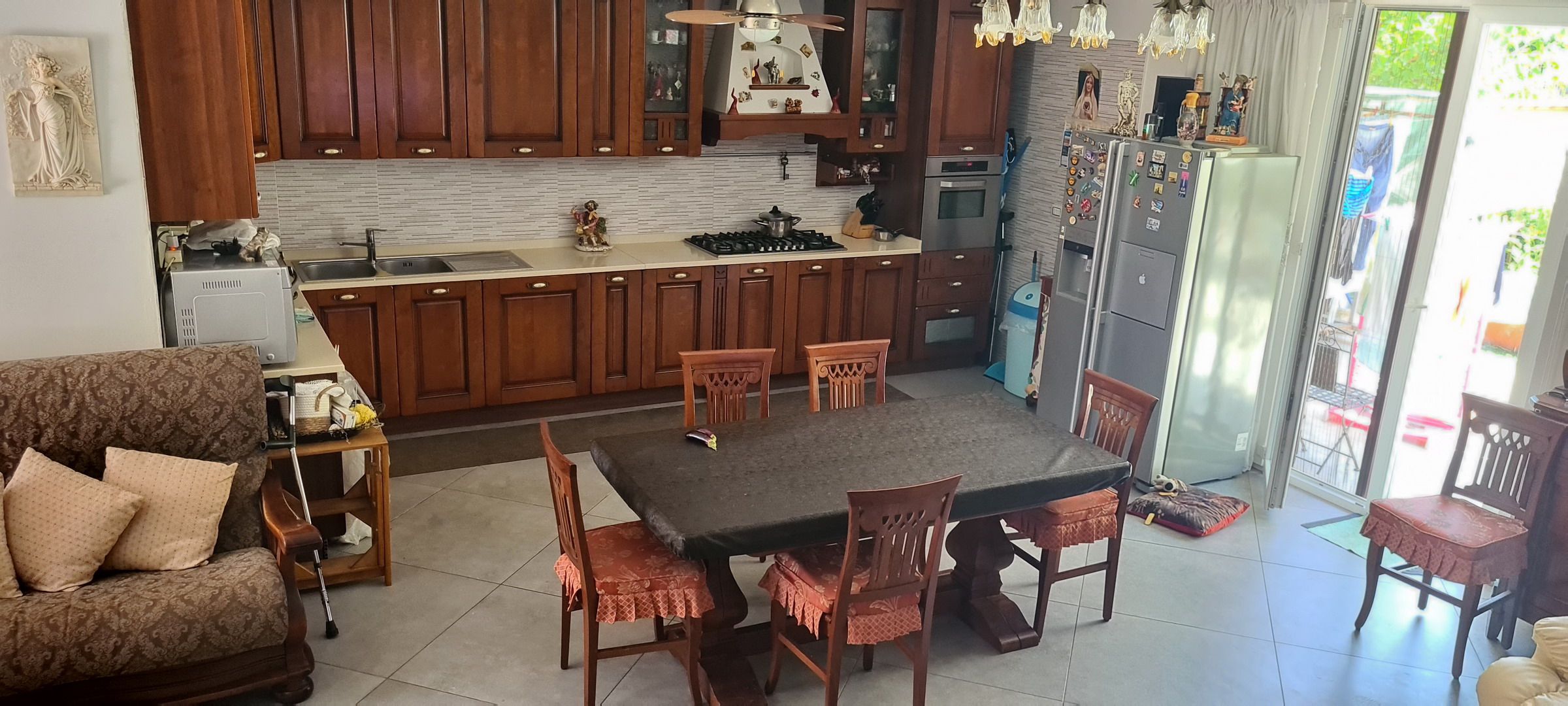 In parco di nuova costruzione, con ingresso dalla strada principale, disponiamo in vendita di una comoda abitazione con accesso indipendente, e disposta su due livelli. Al piano terra è composta da una grande zona giorno con ambiente aperto salone-cucina, che affaccia sull'area esterna di esclusiva proprietà di circa 100 mq complessivi, in parte pavimentata e adibita a terrazzo, ed in parte adibita a giardino; sempre al piano terra troviamo inoltre un bagno, e due comodi ripostigli esterni. Dal piano terra, mediante la scala interna, si accede al piano superiore, che affaccia sia sul lato strada che sul giardino retrostante con due differenti balconi, e che è suddiviso in un disimpegno e tre comode camere da letto ed un altro bagno. L'abitazione è di recentissima costruzione, pari al nuovo e sarà libera per l'atto notarile. L'abitazione si completa di una area antistante privata esclusiva, e di un box auto privato nel piano seminterrato del fabbricato.